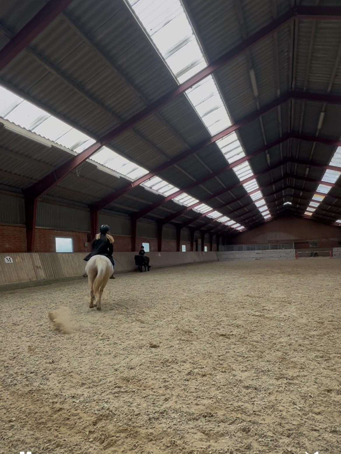 Jeg har stald og ridehal hvor terapien også kan foregå. Oftest foregår det fra jorden, og det kan både være i boksen, på staldgangen, i ridehallen eller på en gå-tur med hesten.